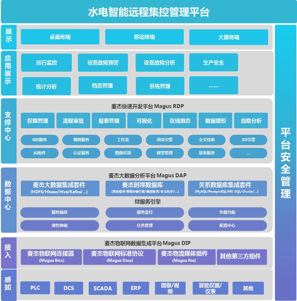 6、采集终端内置SCADA和PLC远程调试功能,实现远程对设备的控制和运行参数优化调整,实现采集、管理、分析、优化的数据价值挖掘的闭环。