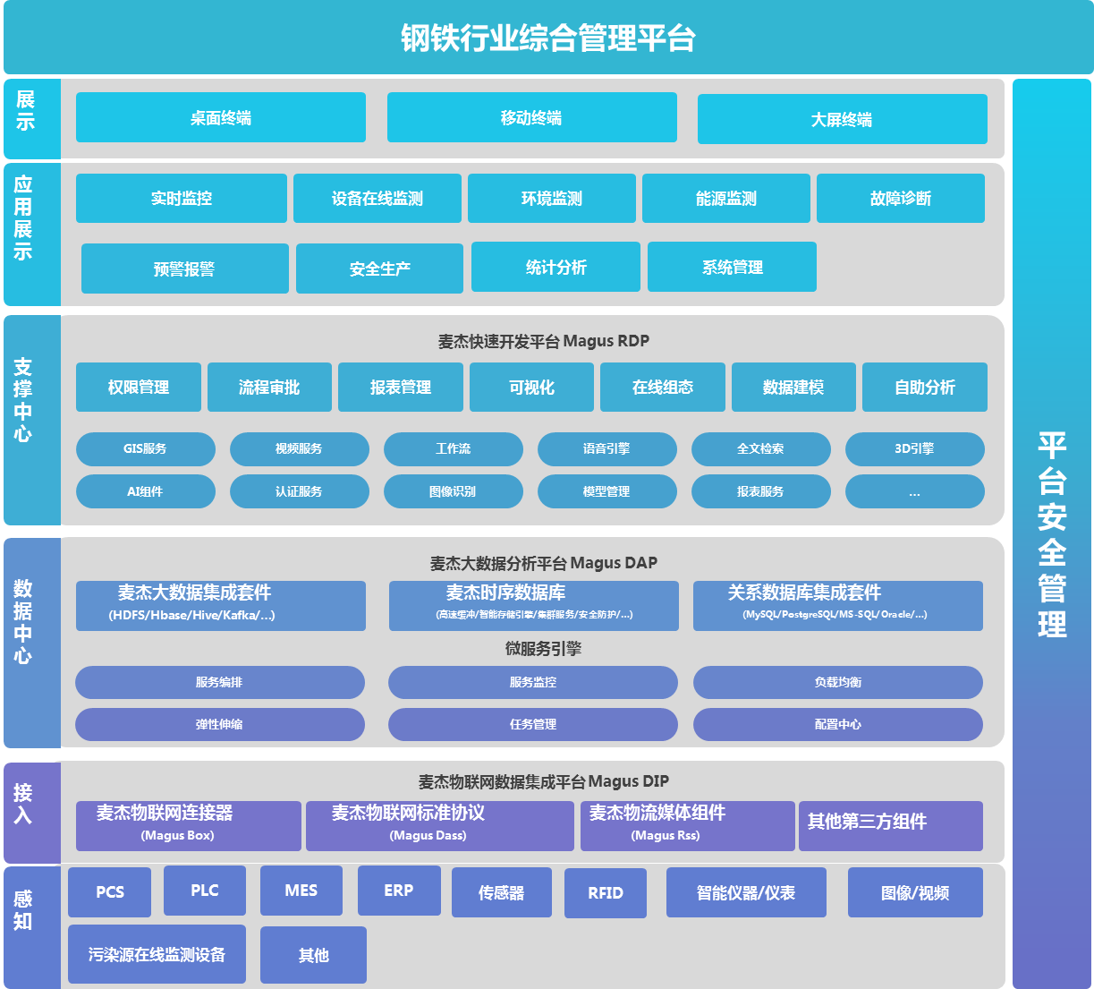 采用MagusBox采集环保设施在线监测数据、工况过程数据、视频监控画面、无组织排放数据、扬尘噪声数据等,为企业建设一个完整的基博鱼(中国)物联网技术架构的环保数据中心,实现对企业污染源排放进行实时监控、分析、预警和管理,形成快捷、准确、先进的环境管理体系,及时掌握污染物排放现状,降低综合决策和业务管理成本。