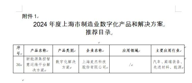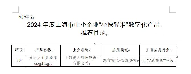 日前上海市经信委发布首批《上海市重点产业和领域数字化博鱼(中国)和博鱼手机登录入口推荐目录》,麦杰科技“麦杰实时数据库openPlant”及“新能源集控智慧运维平台博鱼手机登录入口”荣耀入选。